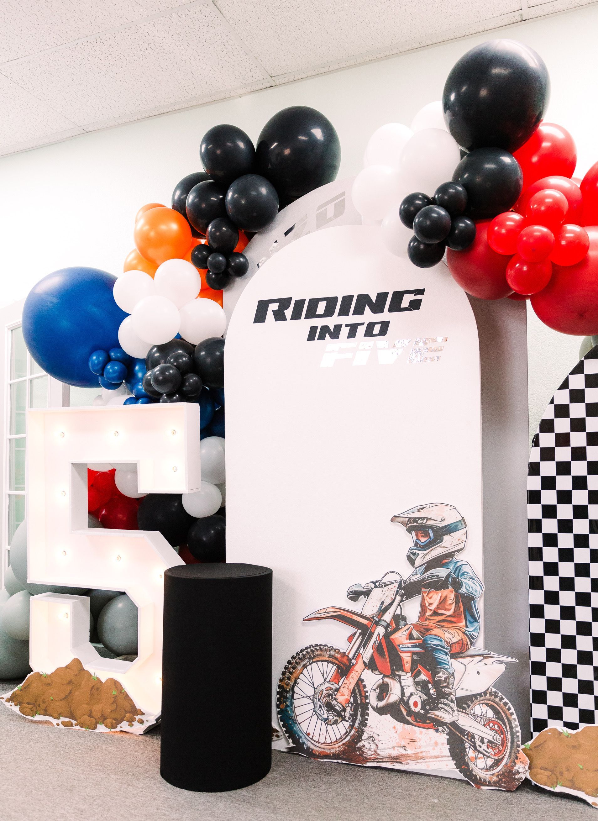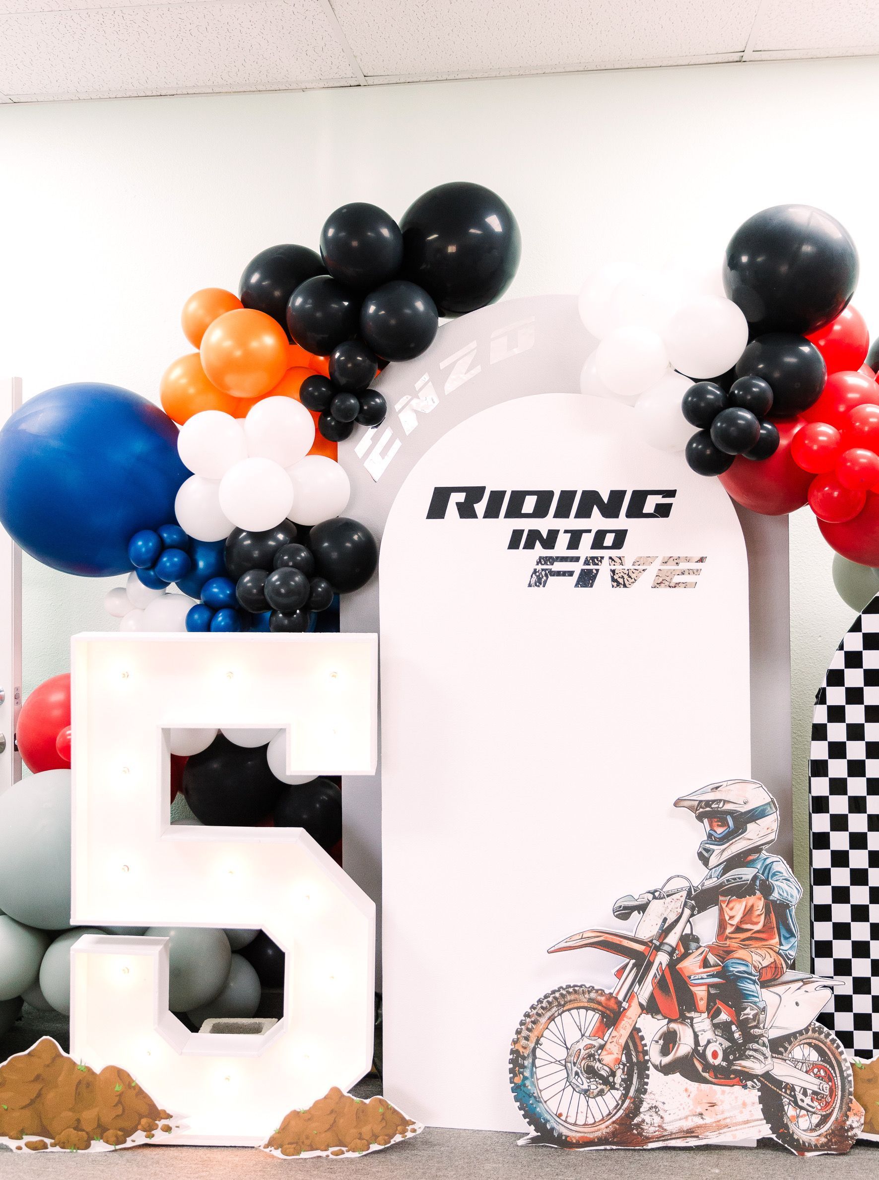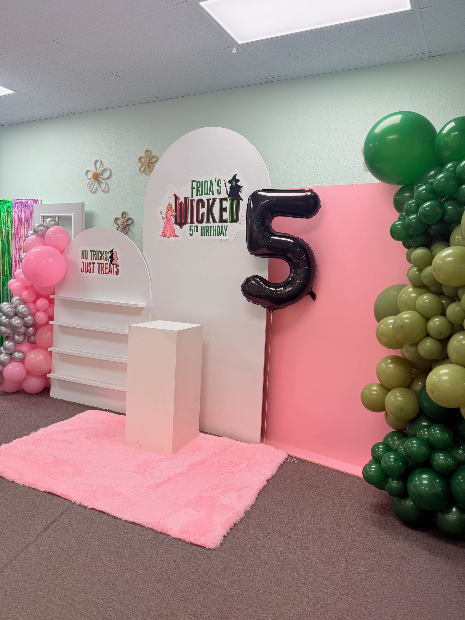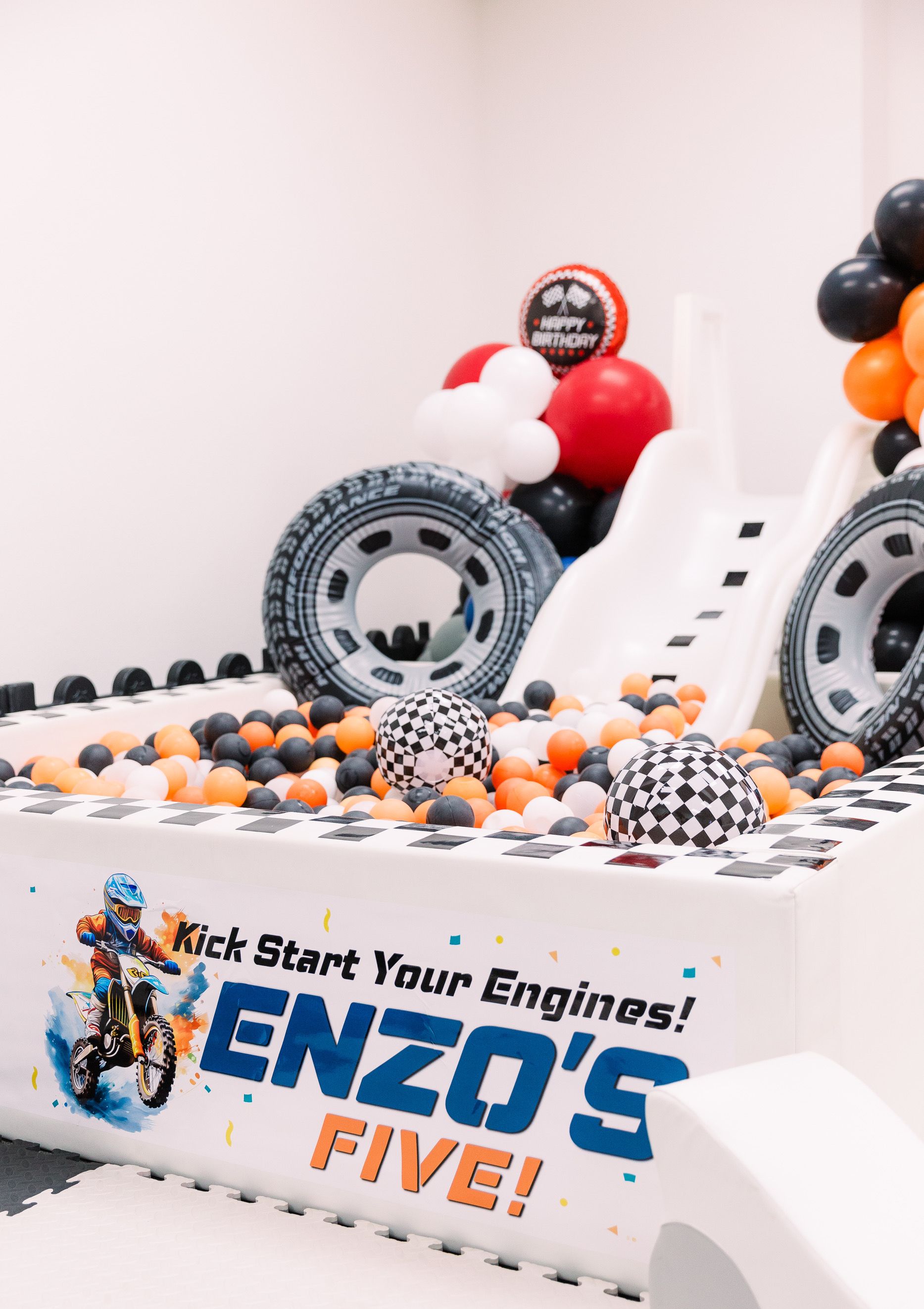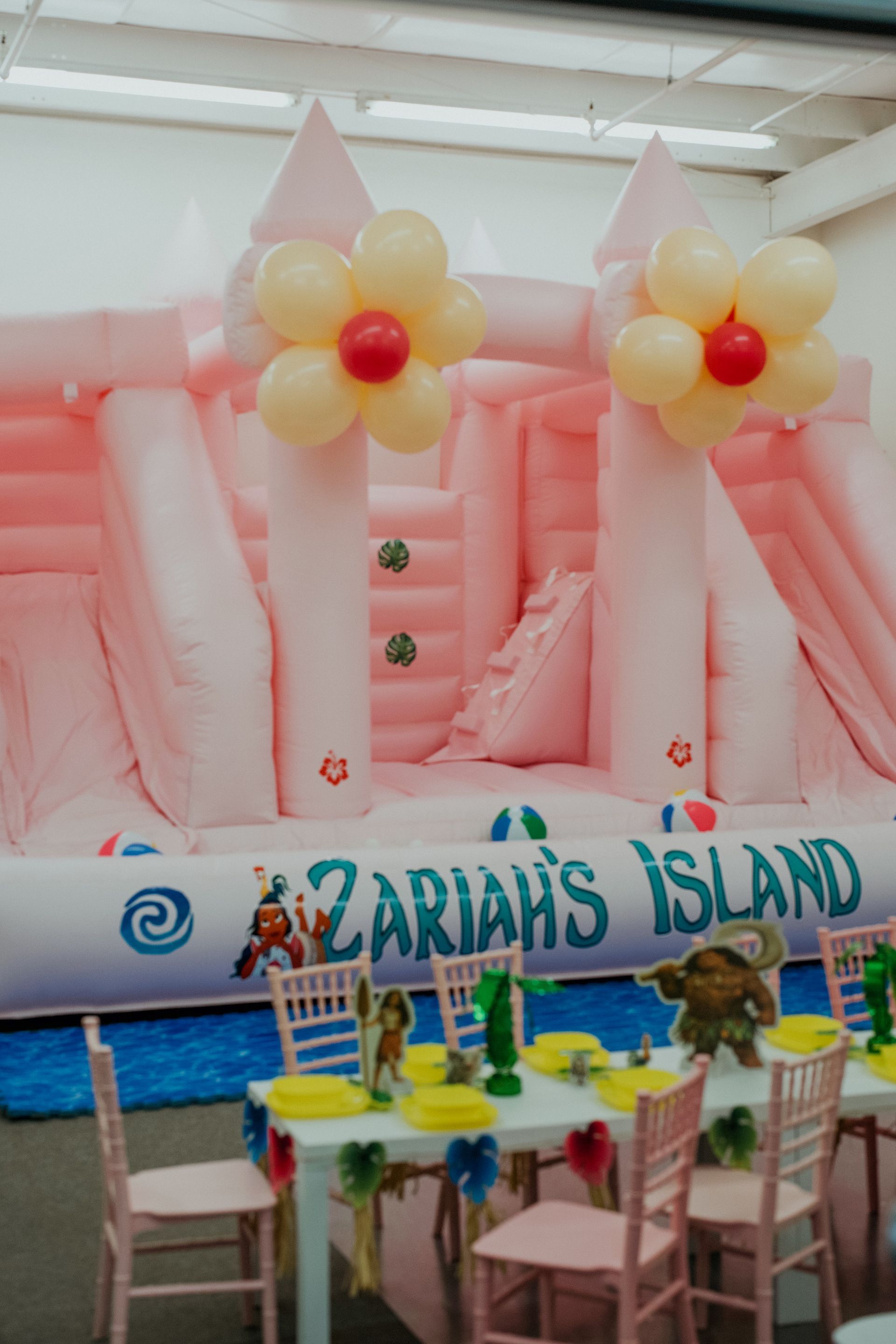 Pizza, balloons, themed decor