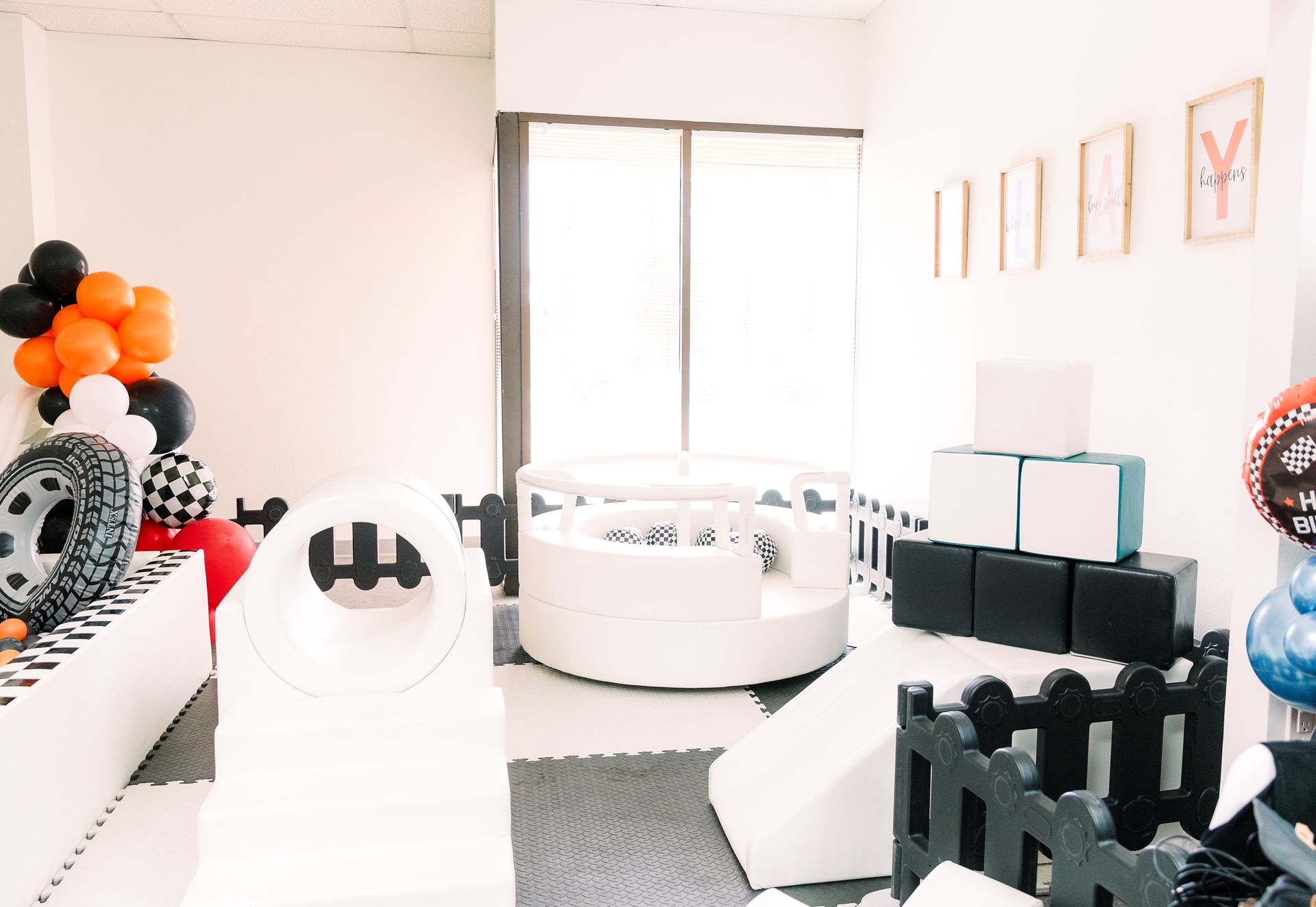 Our modern indoor play space is designed with little ones in mind — offering a safe, clean, and stylish environment for children ages 0–8 to explore, play, and burn energy! From soft play structures to engaging toys and open space for imaginative fun, our playground is the perfect spot for everyday play or a special treat.