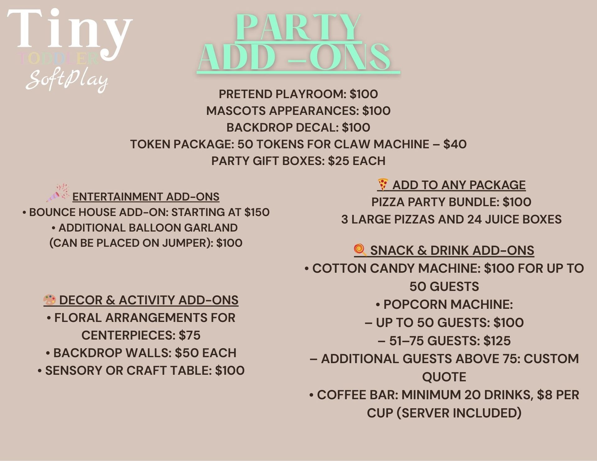 PARTY PACKAGE LINEUP – TINY TODDLER INDOOR PLAYGROUND