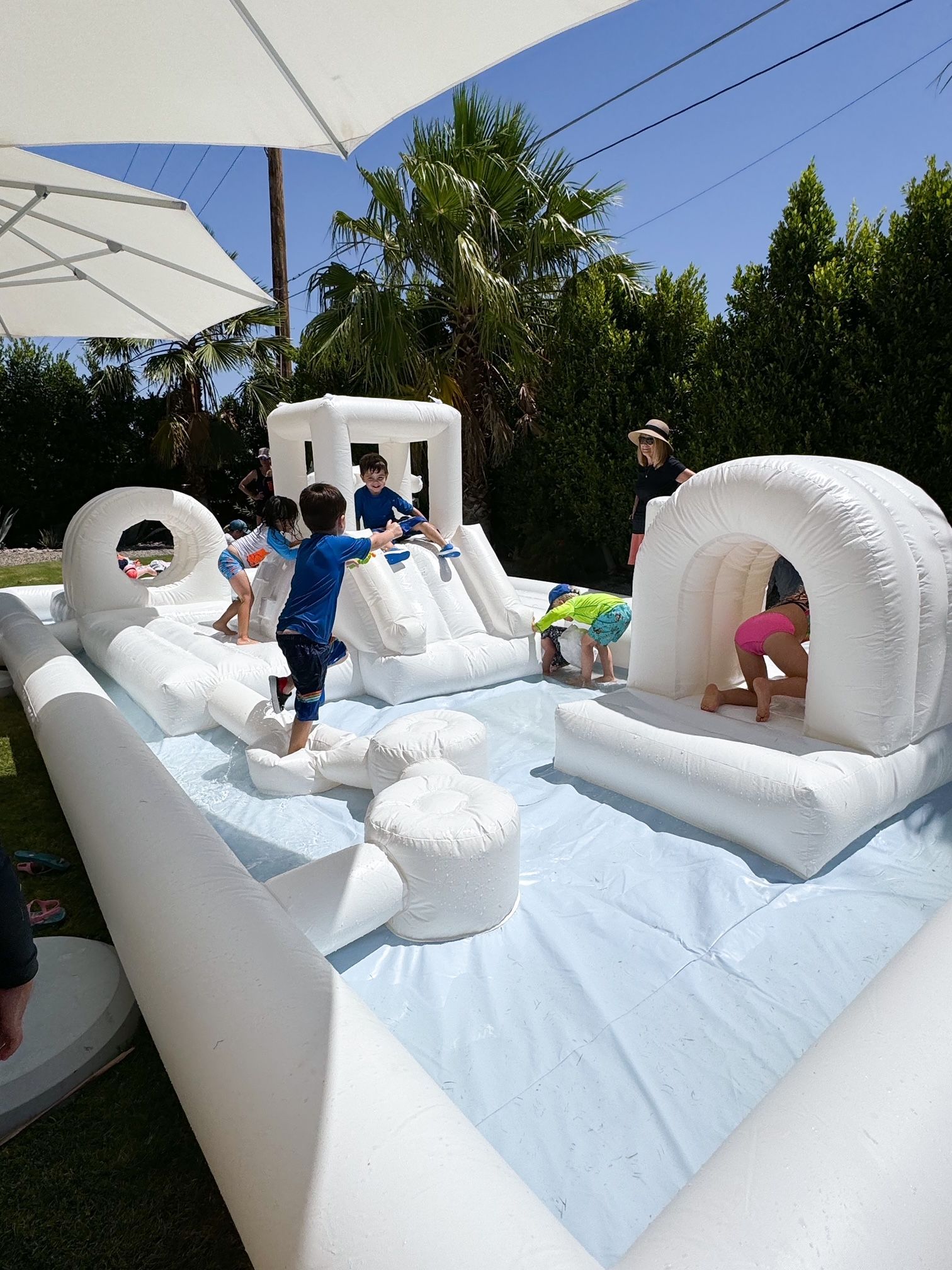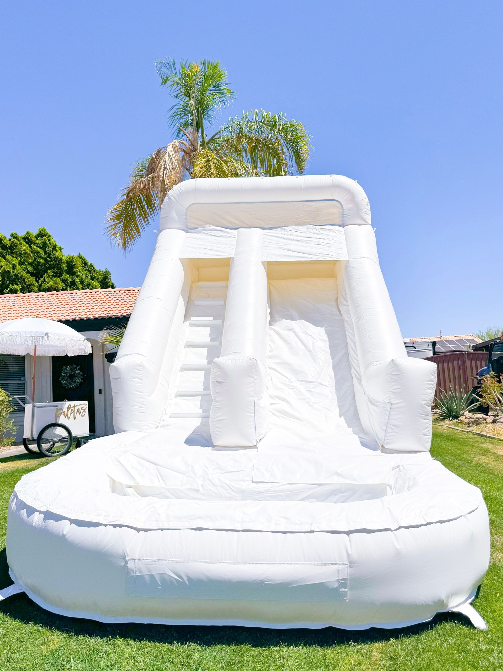 Our sleek and chic white water slide, perfect for all ages and adaptable for both wet and dry use. With a detachable pool feature, it seamlessly transitions into a pool experience. Additionally, the pool can be filled with water for a refreshing splash or transformed into a ball pit with vibrant ball pit balls.